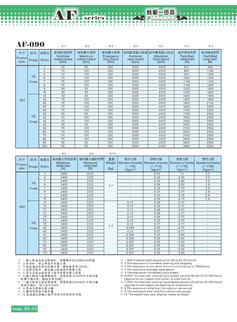 | 減速比 | 7 | 規(guī)格 | AF090-3-K3-19,AF090-4-K3-19,AF090-5-K3-19,AF090-3-K7-19,AF090-10-K3-19 |